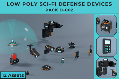 Low Poly Sci-Fi Defense Devices Pack D-002